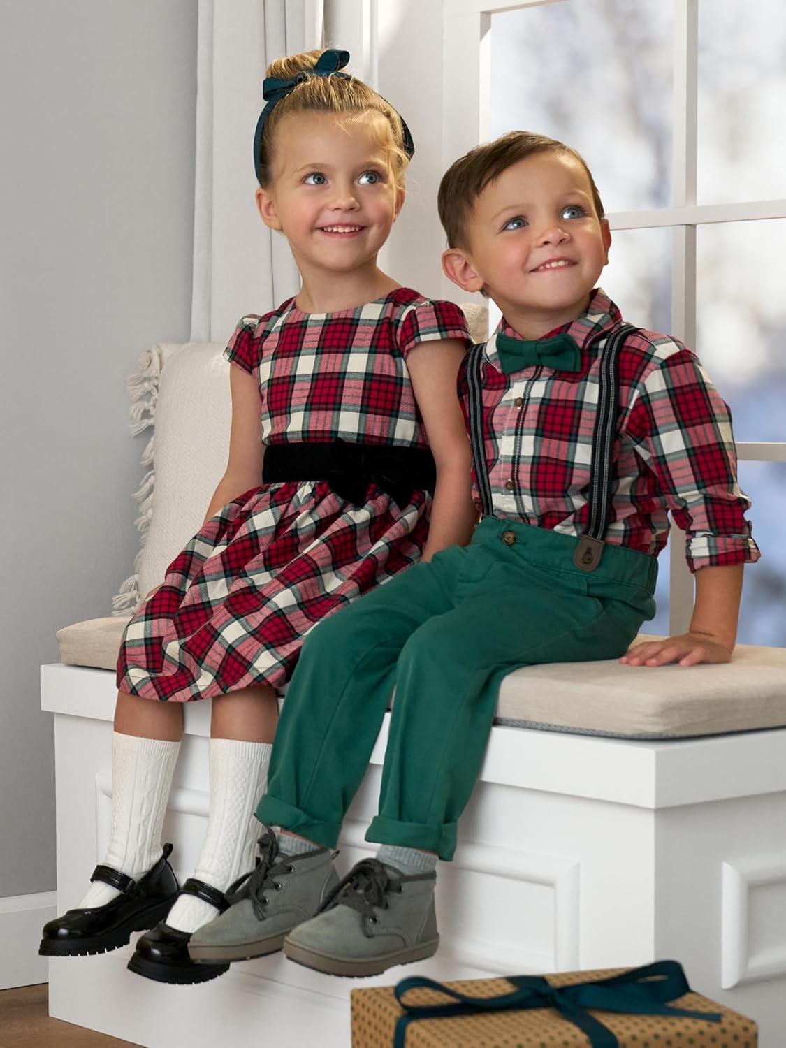 Simple Joys by Carter’s baby-boys 4-piece Special Occasion Bow-tie and Suspender Pants Set(Olive Heather/Red Tartan Plaid)