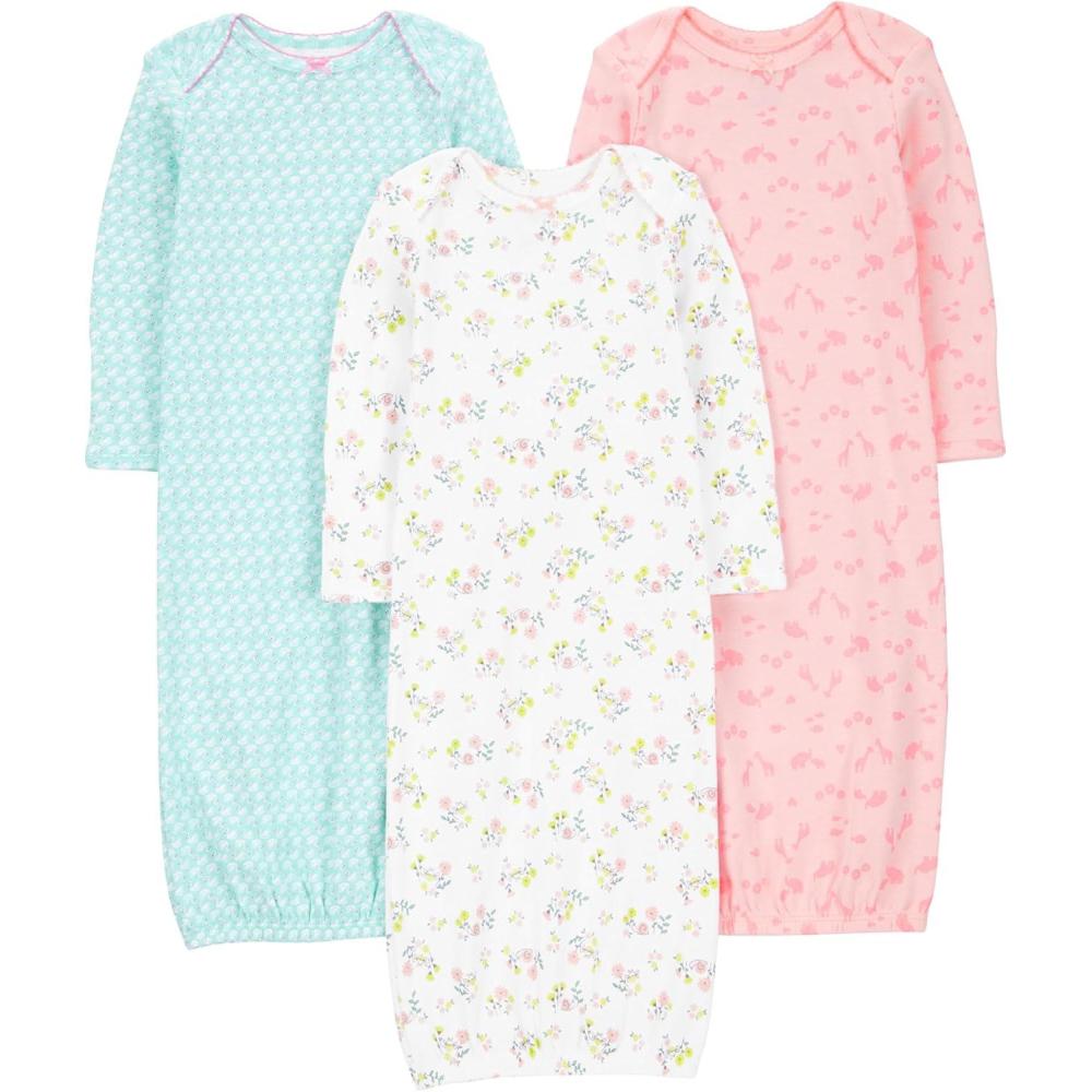 Simple Joys by Carter's baby-girls 3-pack Cotton Sleeper Gown(Blue Ducks/Pink Animal/White Floral)
