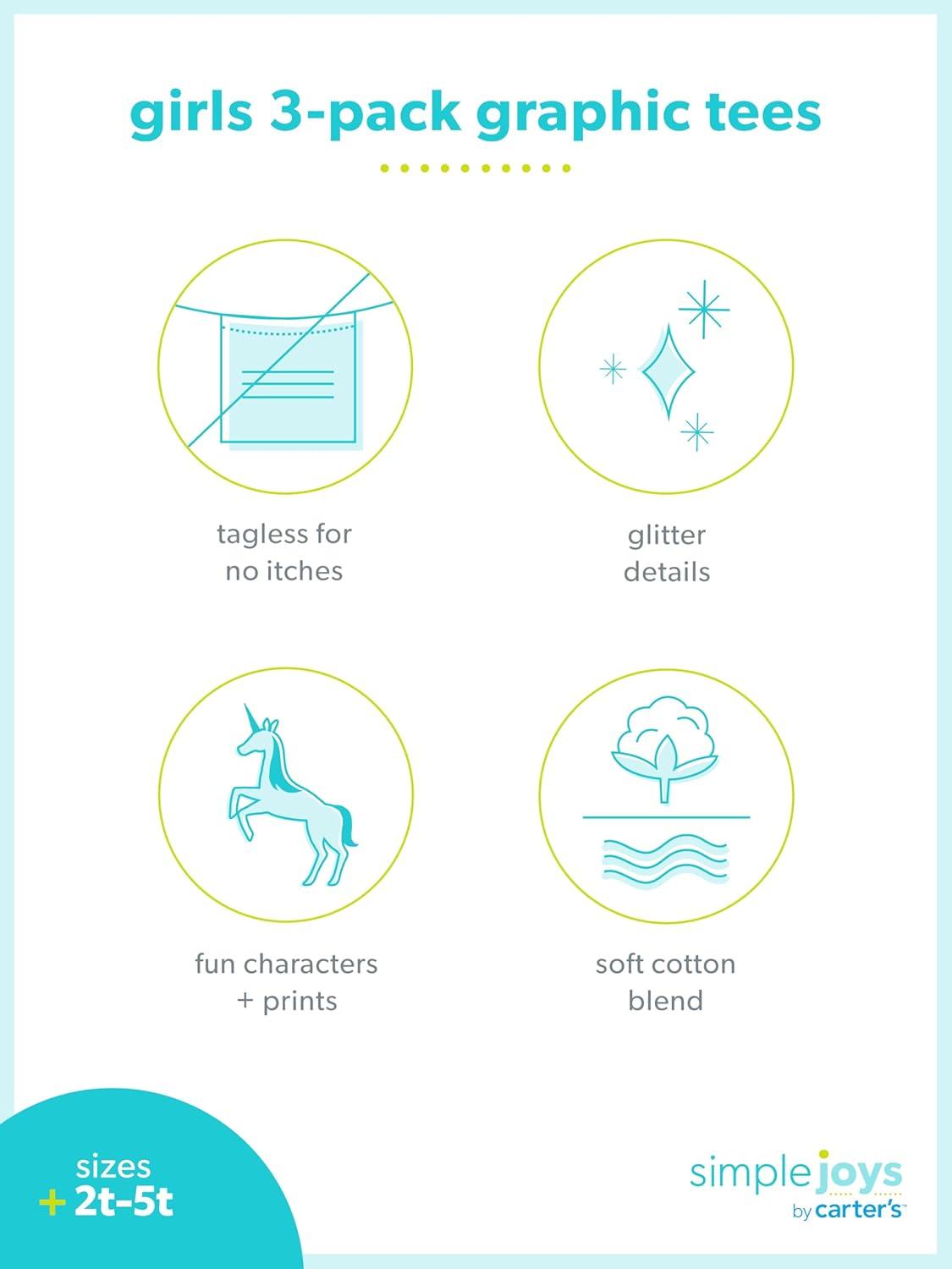 imageSimple Joys by Carters BabyGirls 3Pack Graphic LongSleeve TeesGlitterKittyPurse
