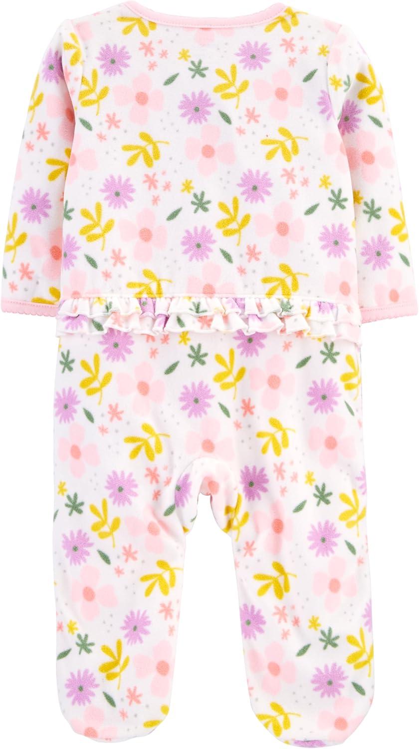 Simple Joys by Carter's Baby Girls' Cotton and Fleece Footed Sleep and Play, Pack of 2(Purple Llama/White Floral)