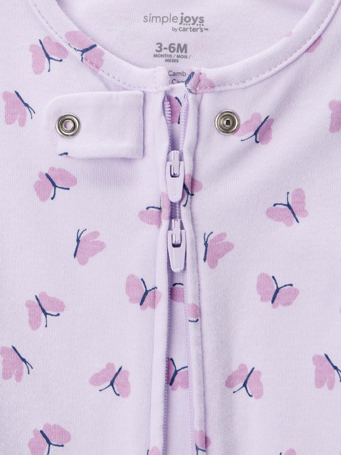 imageSimple Joys by Carters Baby Girls Cotton Footed Sleep and Play Pack of 2Purple Floral Butterly