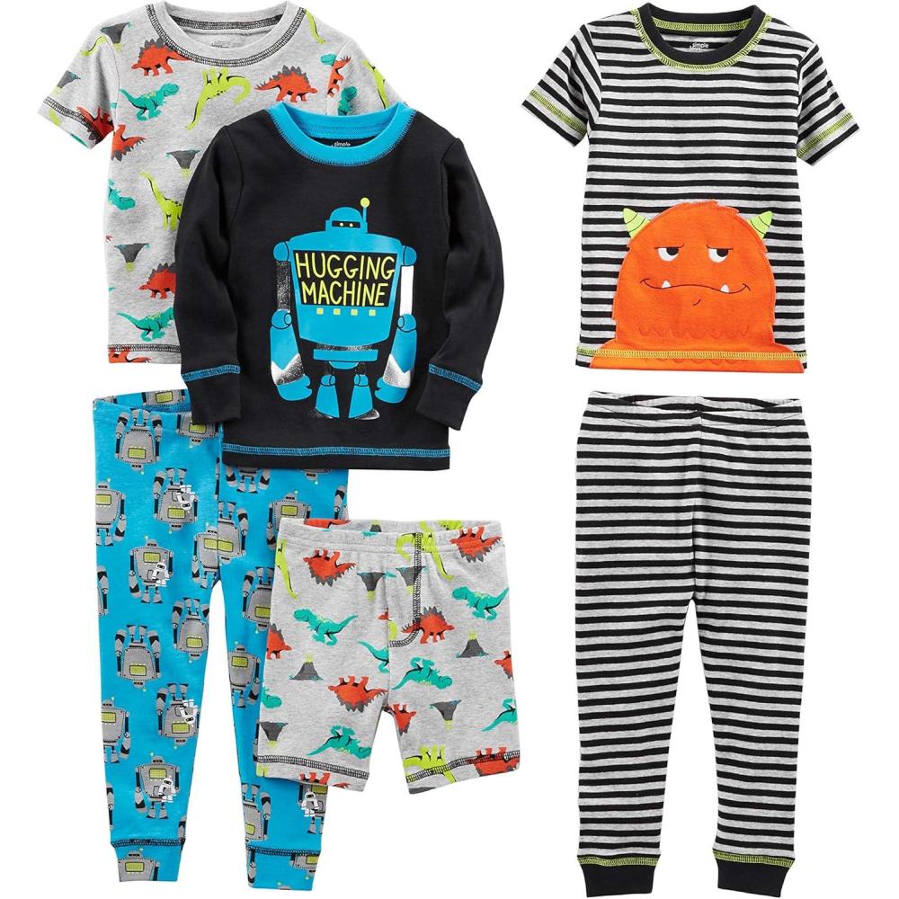 Simple Joys by Carter’s girls 6-piece Snug Fit Cotton Pajama Set(Dinosaur/Monster/Robot/Stripe)