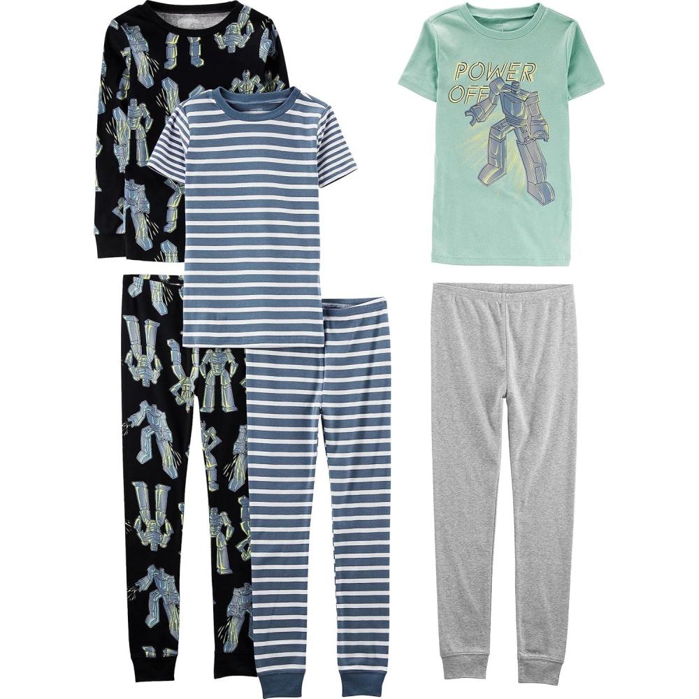 Simple Joys by Carter’s girls 6-piece Snug Fit Cotton Pajama Set(Multicolor/Stripe/Transformers)