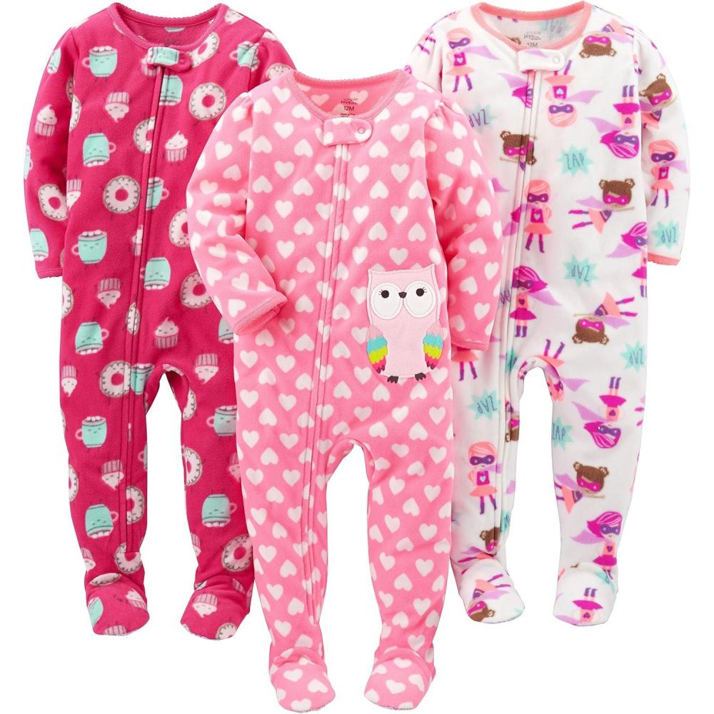 Simple Joys by Carter’s girls Loose-Fit Flame Resistant Fleece Footed Pajamas(Cat/Dots/Owls)