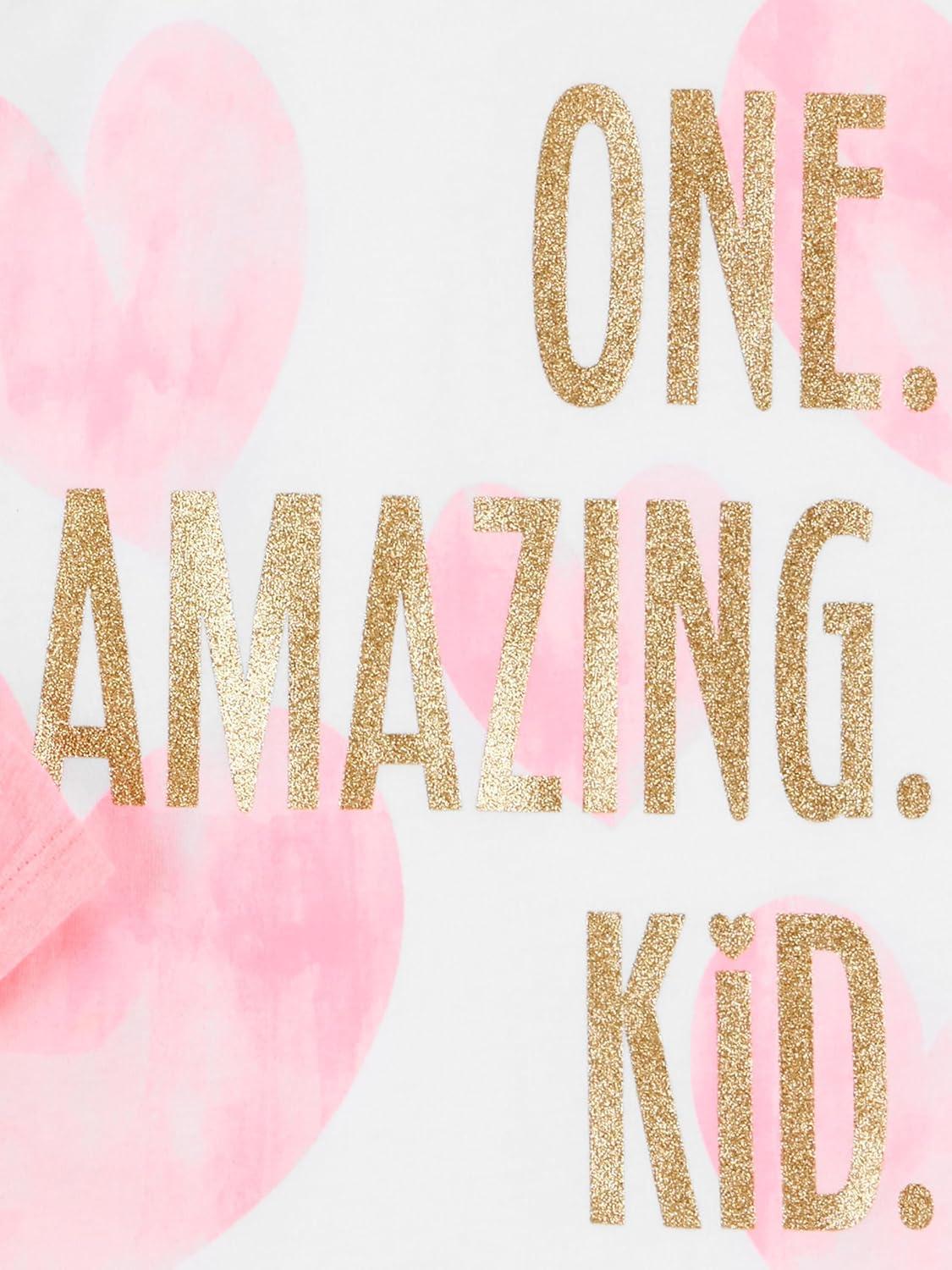 Simple Joys by Carter’s Girls Short-Sleeve Shirts and Tops, Pack of 3(Grey Hearts/Pink Dinosaur/White Text Print)