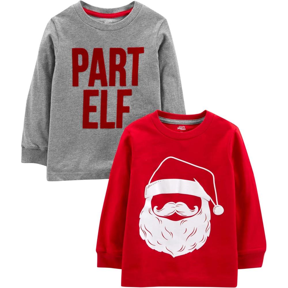 2- pack long sleeve tees with fun and playful holiday themed graphics with rib neckline
