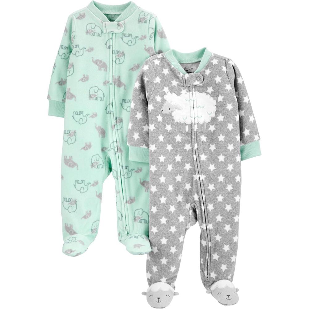 Simple Joys by Carter’s unisex-baby 2-pack Neutral Fleece Footed Sleep and Play(Grey Stars/Mint Green Elephant)