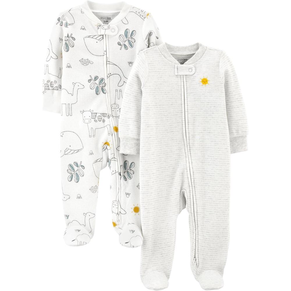 imageSimple Joys by Carters unisexbaby 2way Zip Thermal Footed Sleep and Play Pack of 2AnimalSun