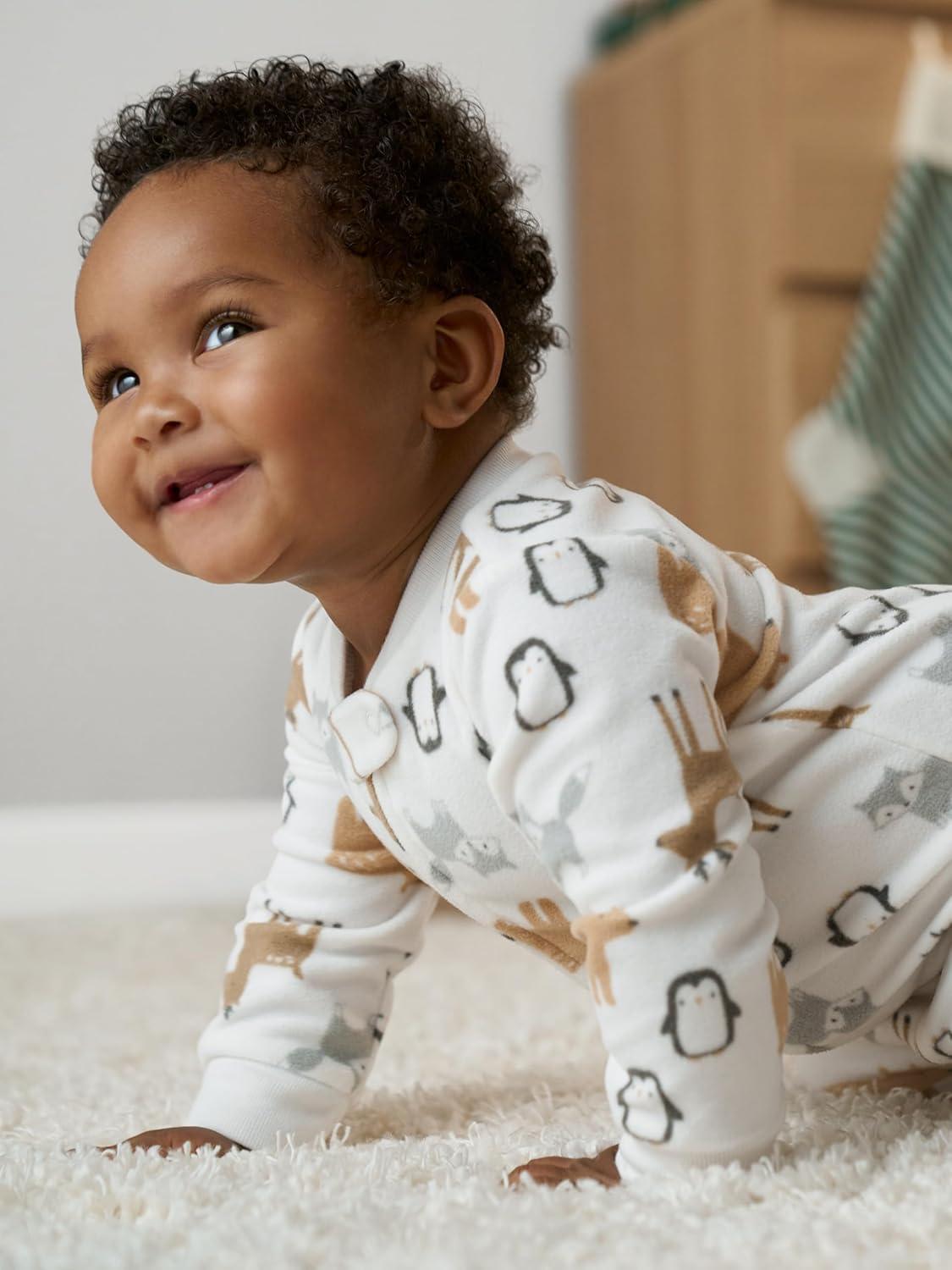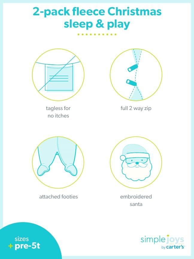 Keep your little one warm and snuggly all season long with this 2-pack of holiday-themed fleece Sleep & Play from Simple Joys by Carter’s. Designed for both sleep and playtime, these soft, one-piece footed pajamas make dressing easy with a 2-way zipper for quick diaper changes. A safety chin tab ensures extra comfort, while the festive prints add a touch of holiday cheer. This convenient value pack gives you two adorable outfits for double the cozy fun—perfect for stocking up or gifting to a new parent!