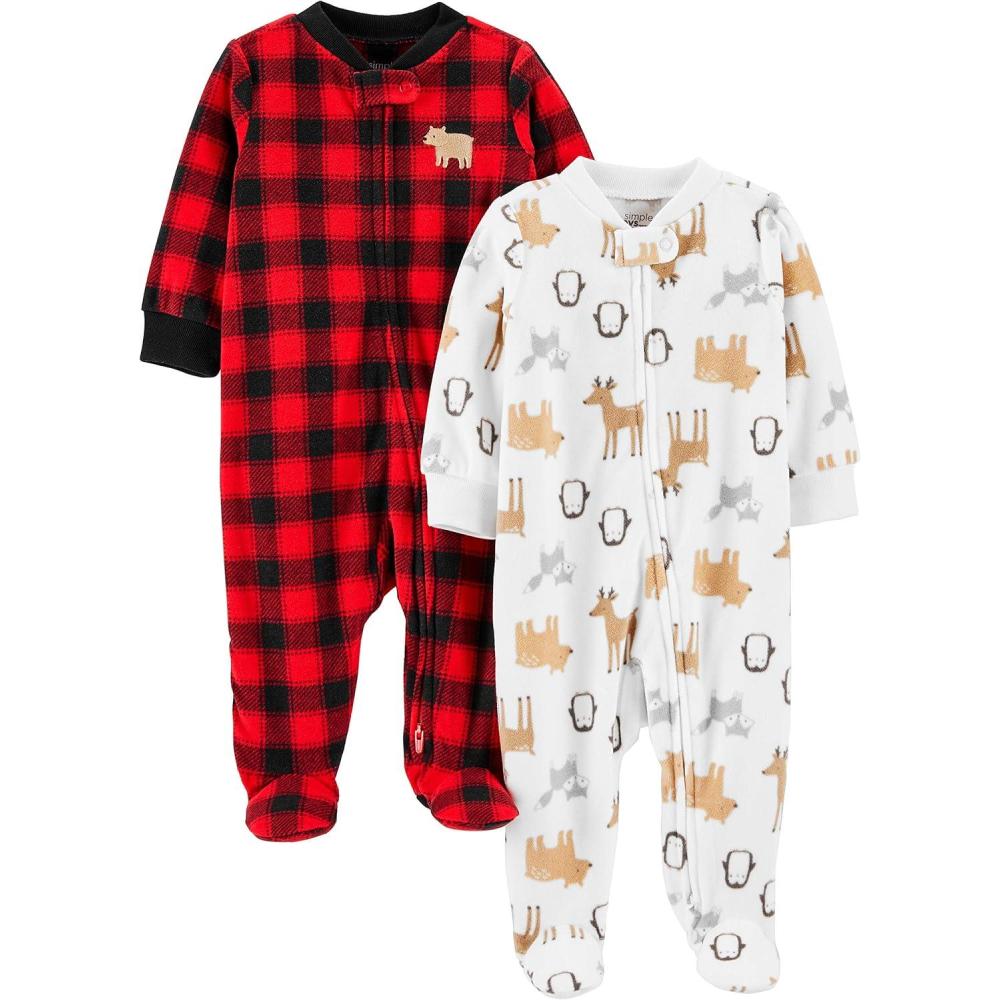 imageSimple Joys by Carters unisexbaby In 2pk Fleece Snp Santa TreesBuffalo CheckForest Animals